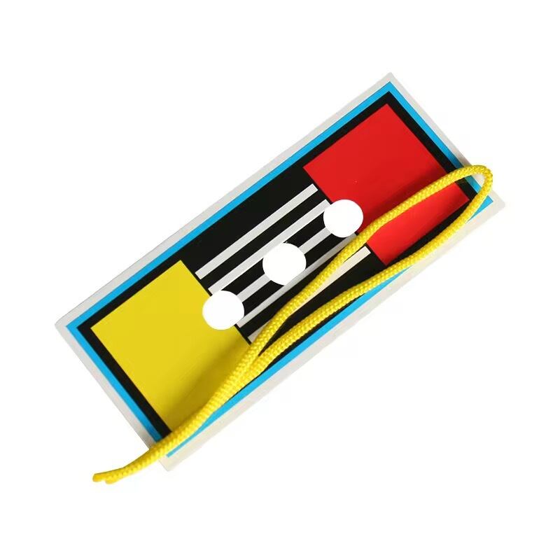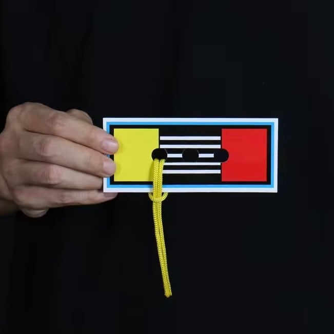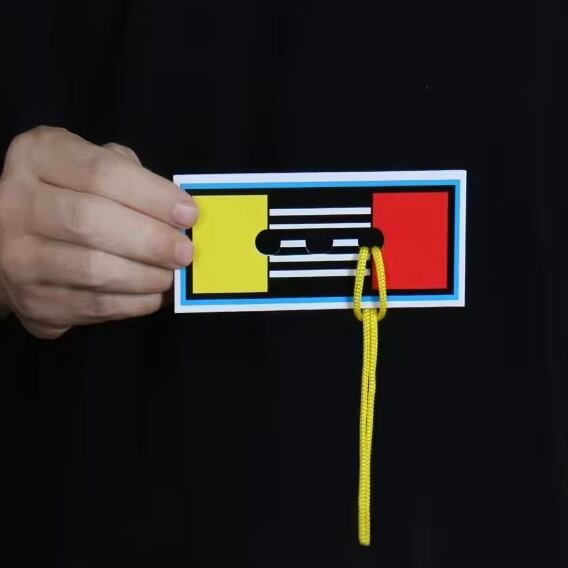 プレートに3つの穴が開いています。穴の右側にロープを結んでいます。そのロープを一瞬で左側に移動させると言います。マジシャンはプレートを体の後ろを回します。するとロープは左側に移動してます!次は右に戻すと言います。また体の後ろに回すとロープは右側に移動しています。これを何度かすると、観客からはタネが分かったような反応が(笑)。そう、道具をひっくり返していただけでした(笑)マジシャンは移動させる場所のリクエストをするように言います。もちろん真ん中に移動して欲しいと観客から言われます。次の瞬間!マジシャンは見事に真ん中にロープを移動させることに成功します!