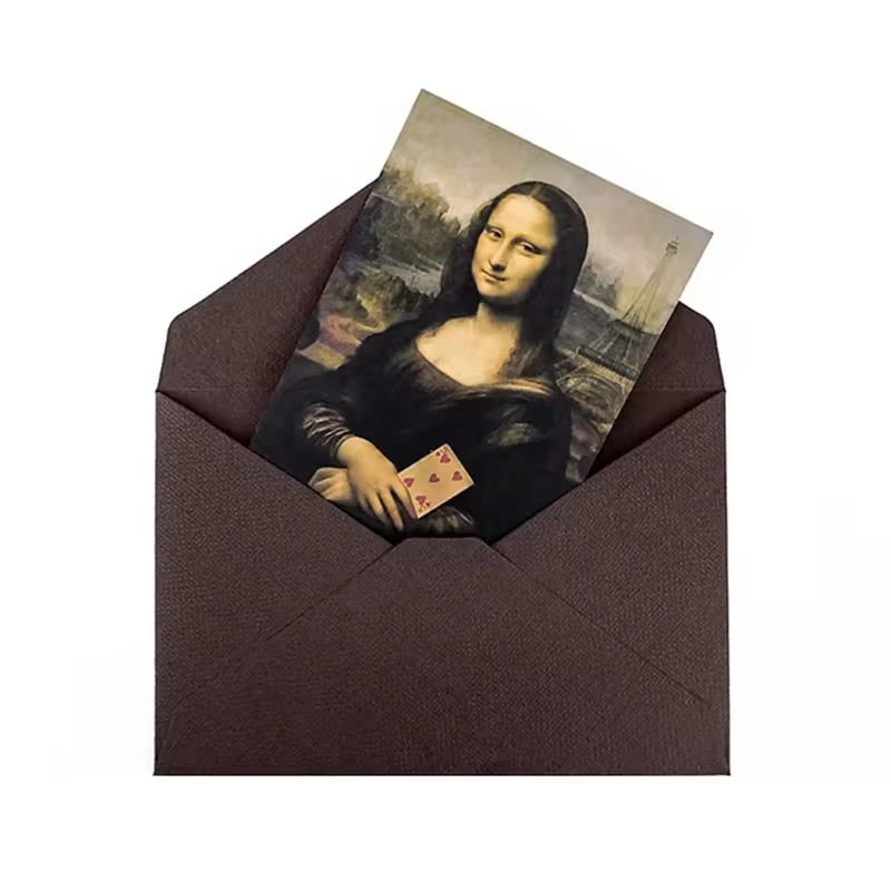 お客様に1枚のカ―ドを選んでもらいます。封筒から1枚のモナリザの写真を取り出します。