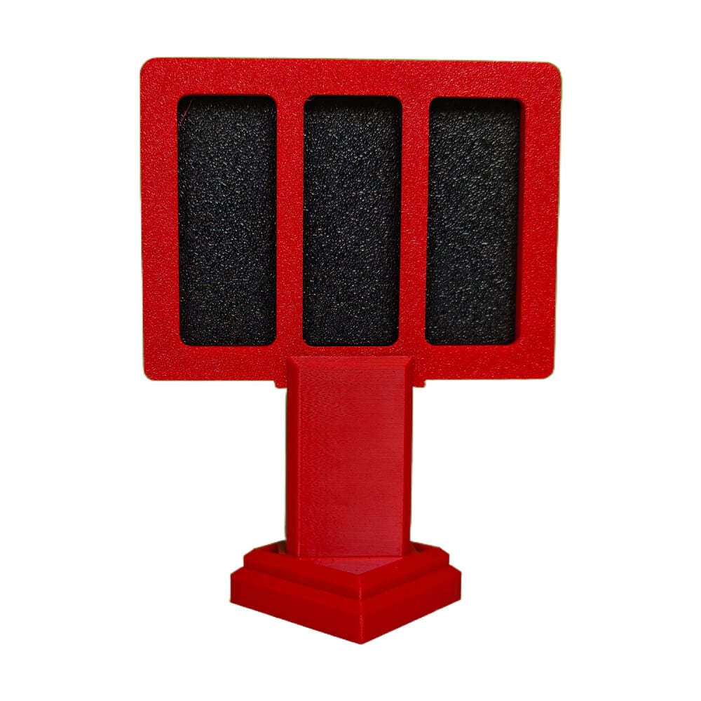 マジシャンは、トランプの束から1枚のカードを抜きだし、ディスプレイスタンドの窓に入れます。おまじないをかけると・・・カードの中央部分を引き出すことができます。カードは完全にカットされています。中央部分を押し戻すと、カードは瞬時に元の状態に戻ります。最後に、カードを観客に手渡して確認してもらいます。