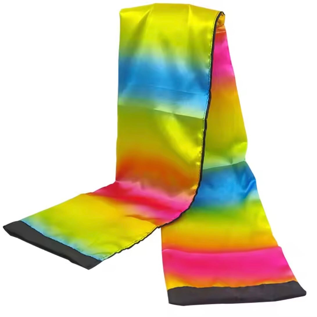 黒い布の端をつまんで空中で一振りすると・・・一瞬で虹色の布に変化します!反対に虹色の布を一瞬で黒くすることもできます。
