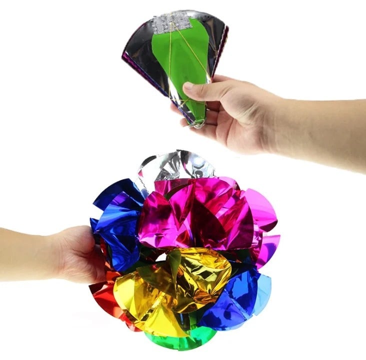 華やかなマジックショーを彩るための欠かせないアイテムで、一瞬にして広がり球型の花になります。何度も繰り返し使用でき、非常にコンパクトになりますから、いろんな場所に仕込めます。シルクの陰から出現させたりチェンジバッグやダブパン等から取り出すのも効果的です。花の色は、赤、緑、青、黄・・などランダム。高品質なメタリックフィルムで製作されていて、耐久性も抜群ですので末永くご使用いただけます。