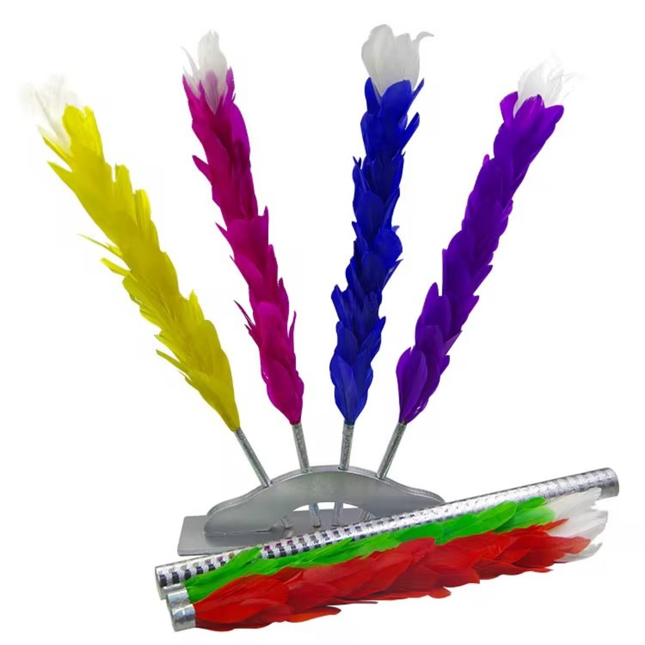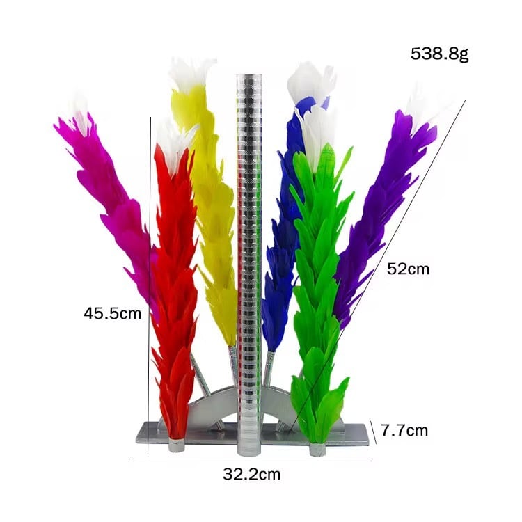 最高品質のフェザーを使用したアイテムで、カラフルなダスターの色が鮮やかに変化していきます!マジックとしては、わかりやすくウケがいいですし、道具立てもきれいです。しっかりしたスタンドも付いていますので、ステージでもとても演じやすくなっています。