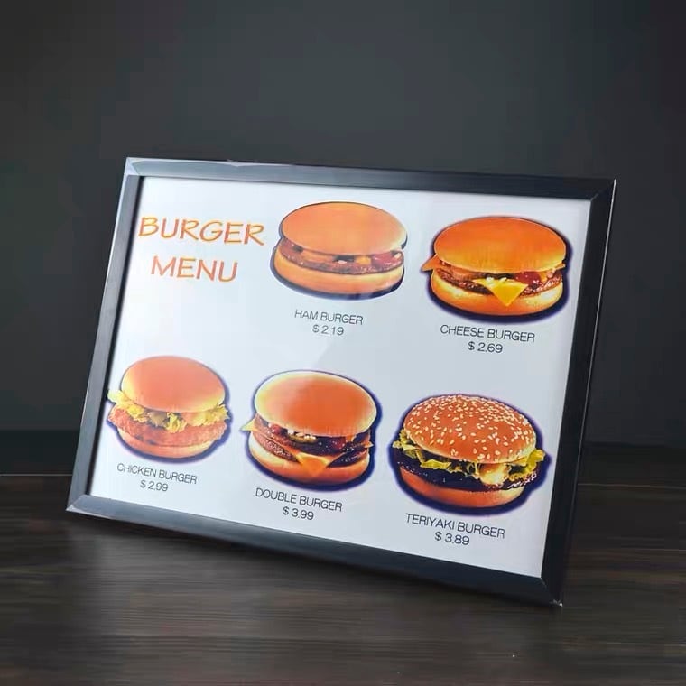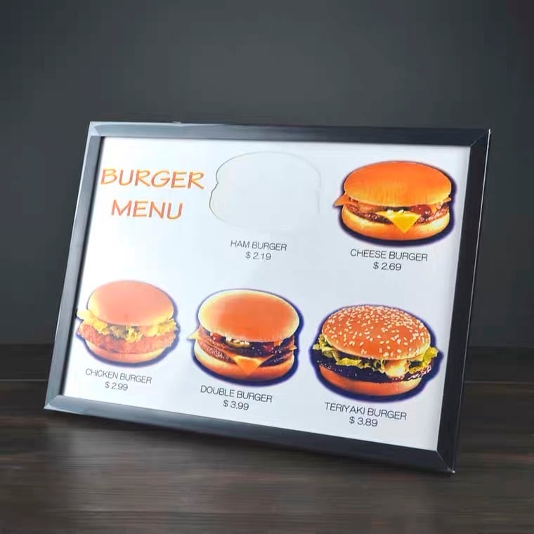 まるでマジシャン・セロ!絵のハンバーガーが飛び出してきます!メニューボードにハンバーガーが描かれています。その絵を引っ張るとゆっくり本物のバーガーになって現れます。バーガーが描かれていた場所は空白に変わっています!