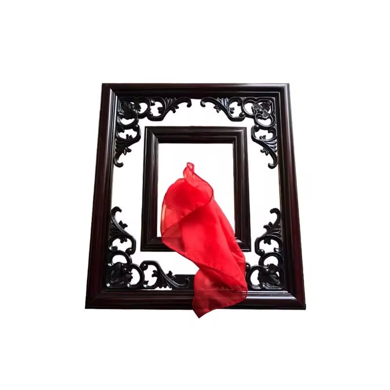 非常に精密に製作された鏡により、誰でも簡単に凄いマジックを演じることができます。鏡に仕掛けられた特殊機構のおかげでオートマチックに演じられるうえ、お客様に手渡して調べてもらうことができます。これは本当に驚異的なことで、実際に道具に触ってもらうことで不思議さは倍増します。ですから大人数に見せられるステージサイズの大きさになっていますが、目の前で見せるクロースアップでも問題なく演じることができます。鏡はシルクのハンカチばかりでなく、ペンやウォンド等色々な物を貫通させることができます。最高品質のこのアイテムを一つ持っておけば、本当に重宝するのでおススメです!